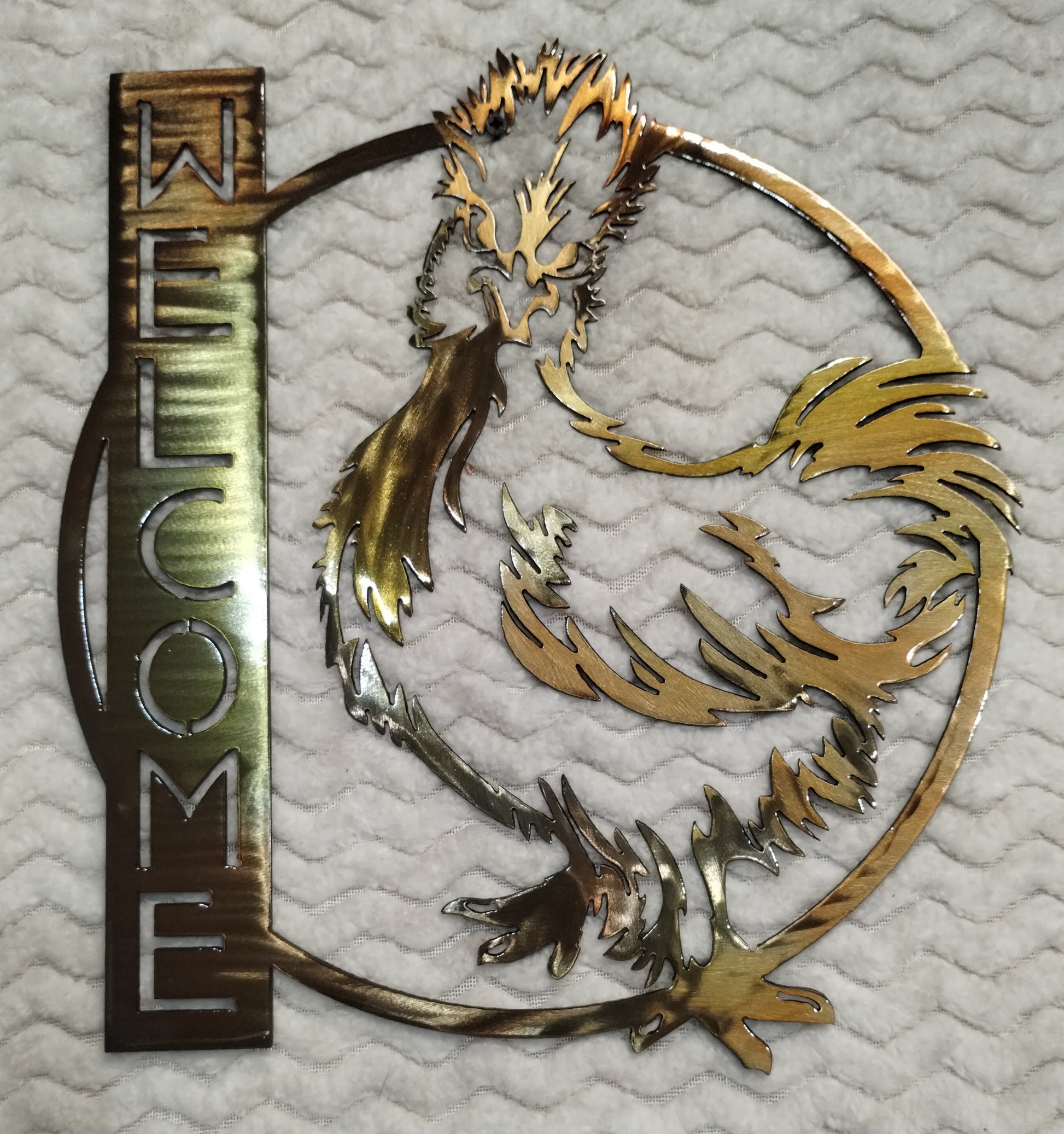 Add a warm, handcrafted touch to your entryway with a Metal Welcome Sign from FlashBurn Designs. Each piece is precision-cut from durable 16-gauge steel and hand-sanded for a smooth surface, then it is finished in a solid-color powder coat. The powder coating process creates a strong, weather-resistant finish that protects the metal from rust, fading, and scratches, making it perfect for indoor or outdoor use year-round.