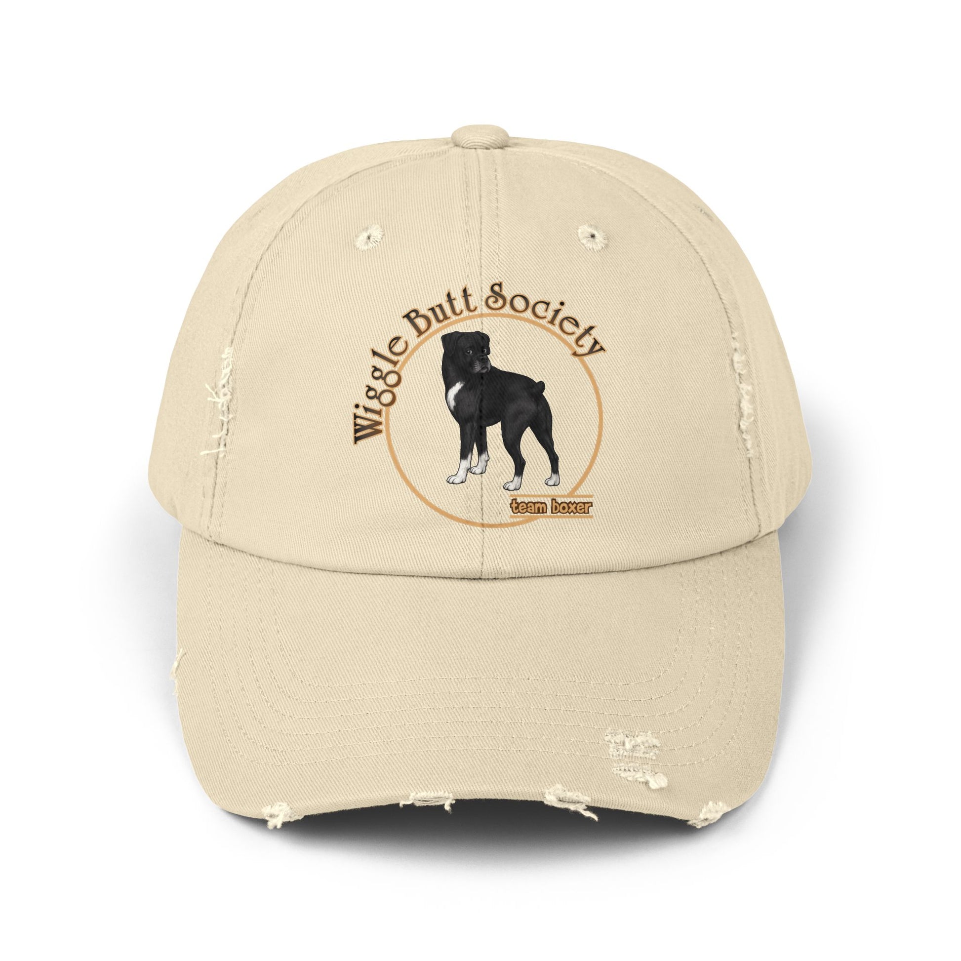 This Team Boxer distressed cap features a hand-drawn illustration of a Boxer paired with bold Team Boxer lettering. Designed with a relaxed, broken-in look, it’s an easy everyday hat for dog walks, errands, and weekends. Comfortable, casual, and full of Boxer personality, this cap is a staple piece for anyone who proudly supports their team.