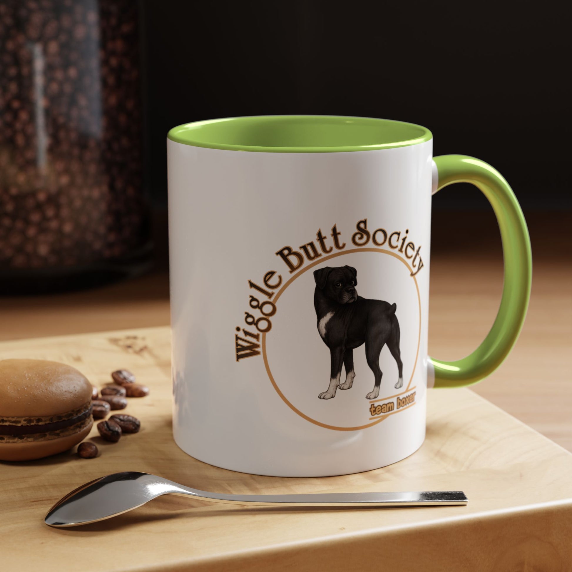 This Team Boxer accent mug features a hand-drawn illustration of a Boxer paired with bold Team Boxer lettering. A perfect addition to morning routines, coffee breaks, or cozy evenings, it’s made for everyday use with a little personality.