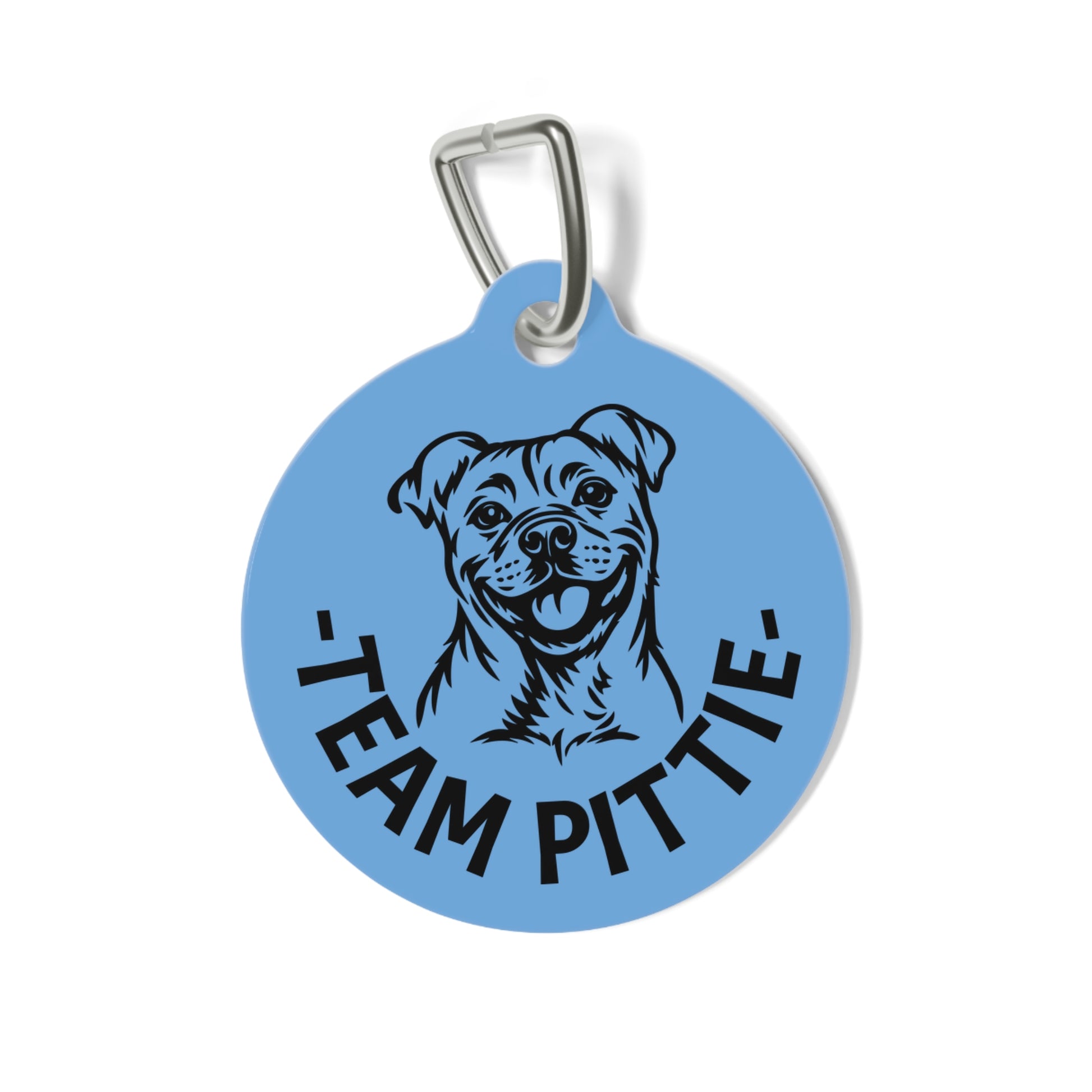 This Team Pittie badge Tag features a bold black-and-white Pittie illustration paired with curved TEAM PITTIE lettering, creating a clean, classic design that feels more like a club emblem than a novelty tag. It’s perfect for dogs who proudly represent their team everywhere they go - from daily walks to couch duty.