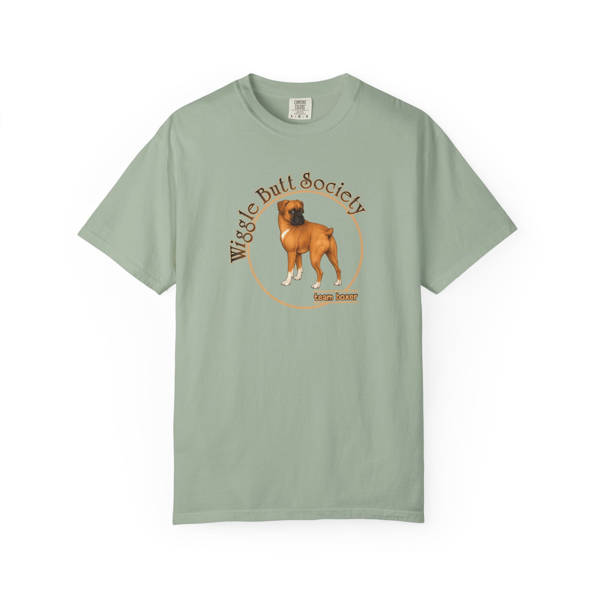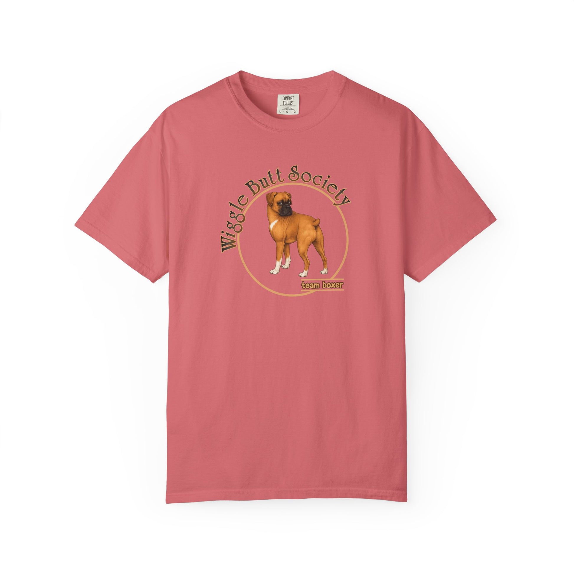 This Team Boxer t-shirt features the classic Wiggle Butt Society logo paired with a hand-drawn Boxer illustration and bold Team Boxer lettering on the front. Clean, simple, and easy to wear, it’s designed for everyday life - dog park runs, errands, couch snuggles, and everything in between.